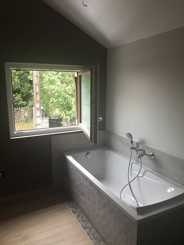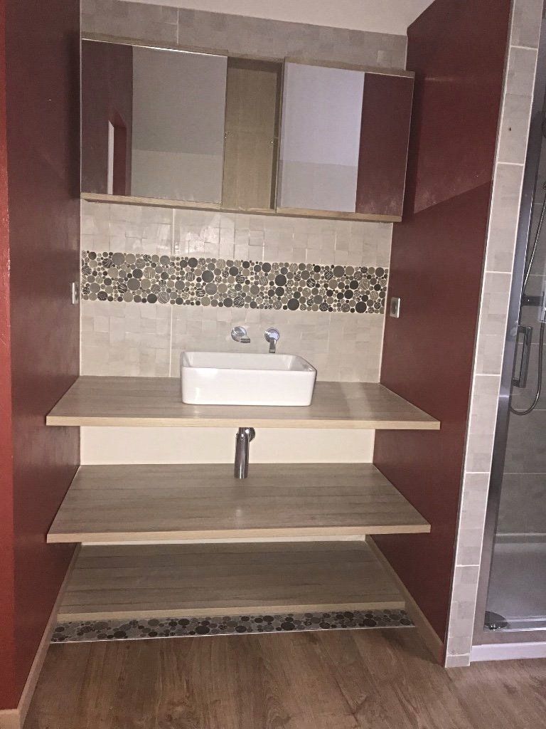 - la cloison de la pièce sert de garde corps, prolongée afin de ne pas avoir à ajouter de garde corps. En vis à vis une autre cloison basse servira de support à l'installation de la télé ce qui permettra de trouver naturellement la place du lit, en valorisant le côté esthétique.